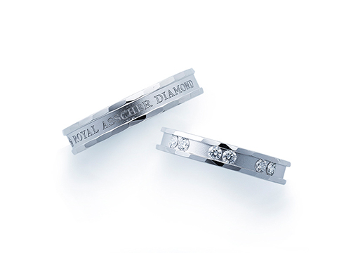 ミル打ちがオシャレなシンプルマリッジリング。 女性は1粒ダイヤモンドをあしらい、少し贅沢に。 埋め込みタイプなので、日常使いにも安心です。